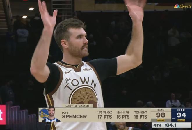 當帕特-斯潘塞打進關鍵球后朝著克利夫蘭的球迷忘情怒吼,這位29歲的雙向合同球員在這座對于金州人來說印象深刻的球館書寫下屬于自己的傳奇故事。