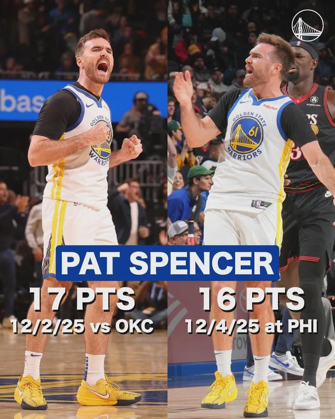 后場無人可用的情況下,勇士將雙向球員斯潘塞調入首發(fā)陣容,這是后者NBA生涯至今第一次首發(fā)出戰(zhàn)。